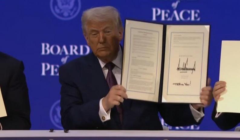 وقع الرئيس الأميركي دونالد ترامب، اليوم الخميس، على ميثاق "مجلس السلام"، وذلك خلال اجتماع ضم قادة الدول المنضمة للمجلس الذي أعلن عن تشكيله حديثا.