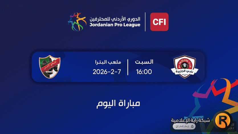 رابط مشاهدة مباراة الأهلي والجزيرة بث مباشر في الدوري الأردني 2026 على القناة الرياضية الأردنية الرابعة بتوقيت عمان.