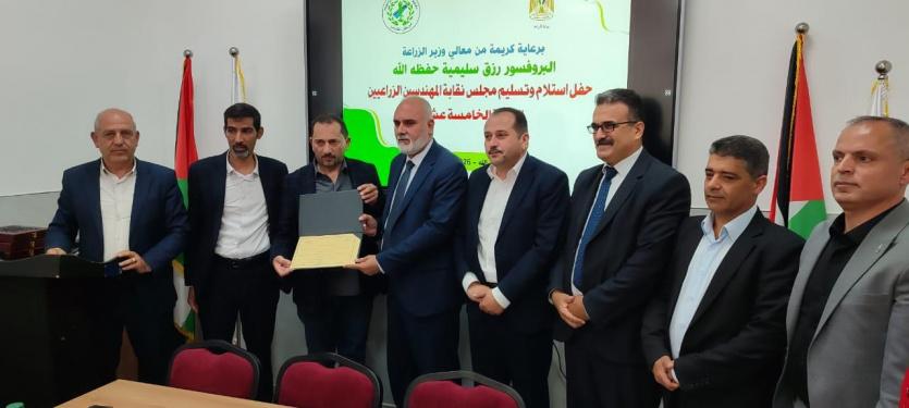تسلم المجلس المنتخب لنقابة المهندسين الزراعيين (الدورة 15) مهامه الرسمية اليوم في مقر النقابة/ رام الله، حيث جرت مراسم التسليم بحضور معالي وزير الزراعة البروفيسور رزق سليمية، وعطوفة الوكيل المهندس بدر الحوامدة، والنقيب السابق المهندس سامر فرح، ومندوباً عن لجنة الانتخابات المركزية.