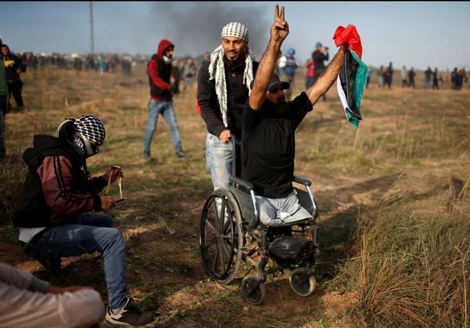 "شهيد بنص جسد" هكذا وصف الشهيد إبراهيم أبو ثريا، الذي استشهد على كرسيه المتحرك حاملًا علم فلسطين خلال مواجهته لقوات الاحتلال على حدود غزة الشرقية، رفضا لاعتبار القدس عاصمة لـ "اسرائيل".