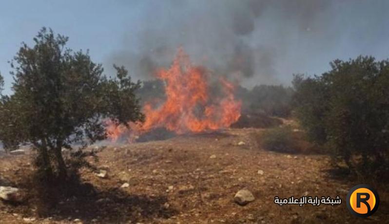 أحرق مستوطنون، اليوم الجمعة، محاصيل القمح والشعير في مسافر يطا جنوب الخليل.