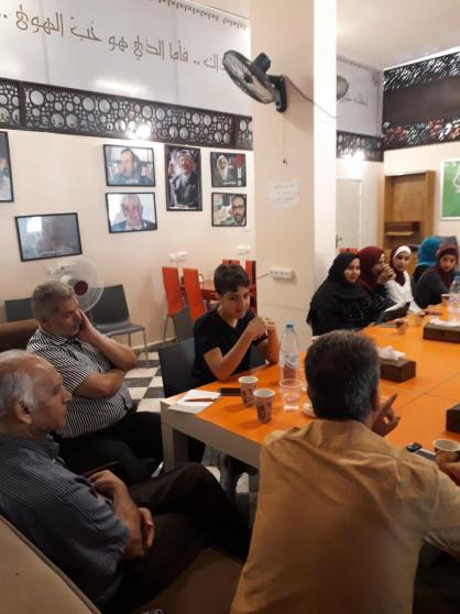 وفي نهاية اللقاء الذي دام أكثر من ساعتين في مقهى "غرناطة" الثقافي بمدينة غزة، التقطت الصور التذكارية وسط أجواء مريحة ورضاء تام من قبل الحاضرين والقائمين على اللقاء.