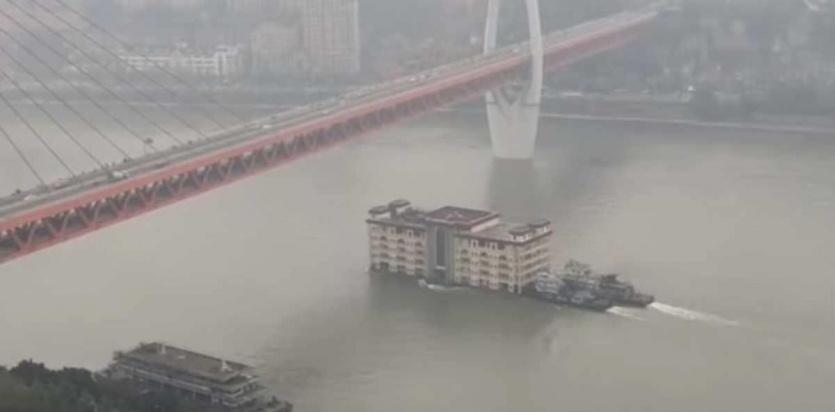 فقد شاهد سكان مدينة تشونغتشينغ الصينية خلال الأيام الماضية، بناء مؤلفا من 5 طوابق يعبر نهر يانغتزي في المدينة.