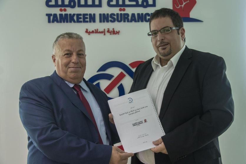 استلمت شركة تمكين للتأمين ممثلة بالسيد محمد الريماوي مديرها العام نتائج دراسة سوقية خاصة بالتغذية الراجعة عن الأداء من مشتركيها ومورديها والتي نفذت من خلال شركة الناشر للدعاية والاعلان بالتعاون مع الباحث المتخصص جاك رباح، اعتماداً على معايير البحث العلمي.