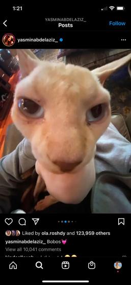 أثارت صورة قط الفنانة المصرية ياسمين عبدالعزيز تفاعلاً كبيرا بين جمهورها وأصدقائها من الوسط الفني، وذلك لغرابة شكله، إذ اعتبره البعض مخيفاً ومرعباً.