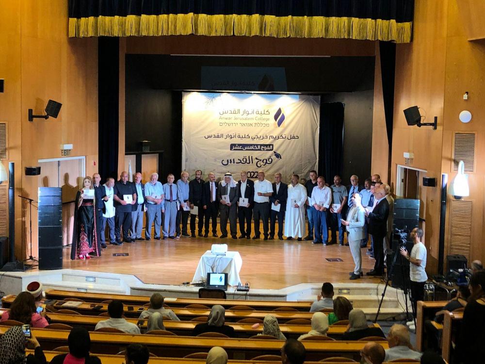 احتفلت كلية انوار القدس بتخريج كوكبة من طلابها بمختلف التخصصات في حفل مهيب اطلق على الخريجين فيه فوج القدس وهو الفوج الخامس عشر في مسرح فندق نوتردام في القدس وحضر الحفل اولياء امور الطلبة الخريجين وعدد من الشخصيات الاعتبارية المقدسية من رجال اعمال ومثقفين ووجهاء عشائر وتخلل الحفل العديد من الفقرات المميزة والنوعية التي نالت استحسان الحضور الذين عبروا عن فرحتهم واعجابهم بالحفل الضخم .