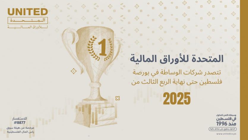 المتحدة للأوراق المالية تحافظ على ريادتها وتتصدر شركات الوساطة في بورصة فلسطين حتى نهاية الربع الثالث من العام 2025"