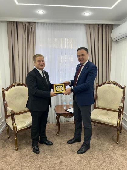 بالإنابة عن معالي وزير خارجية قيرغيزيا والمتواجد خارج العاصمة بشكيك ، استقبل سعادة السيد تيميربيك إركينوف نائب وزير خارجية جمهورية قيرغيزيا ، معالي الدكتور جواد عوَّاد سفير دولة فلسطين لدى جمهورية أوزبكستان وقيرغيزيا بمناسبة انتهاء مهامه الدبلوماسية لدى جمهورية قيرغيزيا وتعيينه سفيراً مفوضاً فوق العادة لدولة فلسطين لدى جمهورية الصين الشعبية .