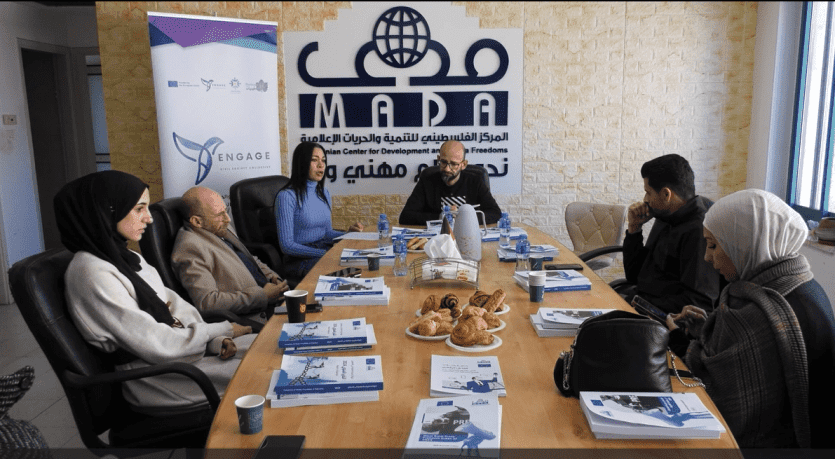 نظم المركز الفلسطيني للتنمية والحريات الإعلامية (مدى)، يوم الأحد الماضي الموافق 14/12/2025، جلسة الاستماع الثانية تحت عنوان "اعتقالات الصحفيين: شهادات وتوصيات"، مع الصحفي سامي الساعي، وذلك في مقر المركز بمدينة رام الله، ضمن أنشطة مشروع Engage الذي تنفذه جمعية فلسطينيات بالشراكة مع جامعة النجاح الوطنية، وبتمويل من الاتحاد الأوروبي، وبمشاركة مركز "مدى" كشريك ثالث.