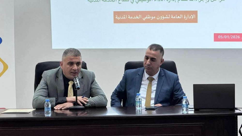 في إطار جهوده المتواصلة لتطوير أداء العاملين في الوظيفة العامة، وتعزيز كفاءة إدارة المال العام، وضمن سلسلة الورش التدريبية التي يعقدها بالتعاون مع مختلف الدوائر الحكومية، افتتح ديوان الموظفين العام ووزارة المالية والتخطيط، اليوم الإثنين، ورشة تدريبية بعنوان "نظام إدارة الأداء الوظيفي في قطاع الخدمة المدنية"، وذلك في مقر وزارة المالية بمدينة رام الله.