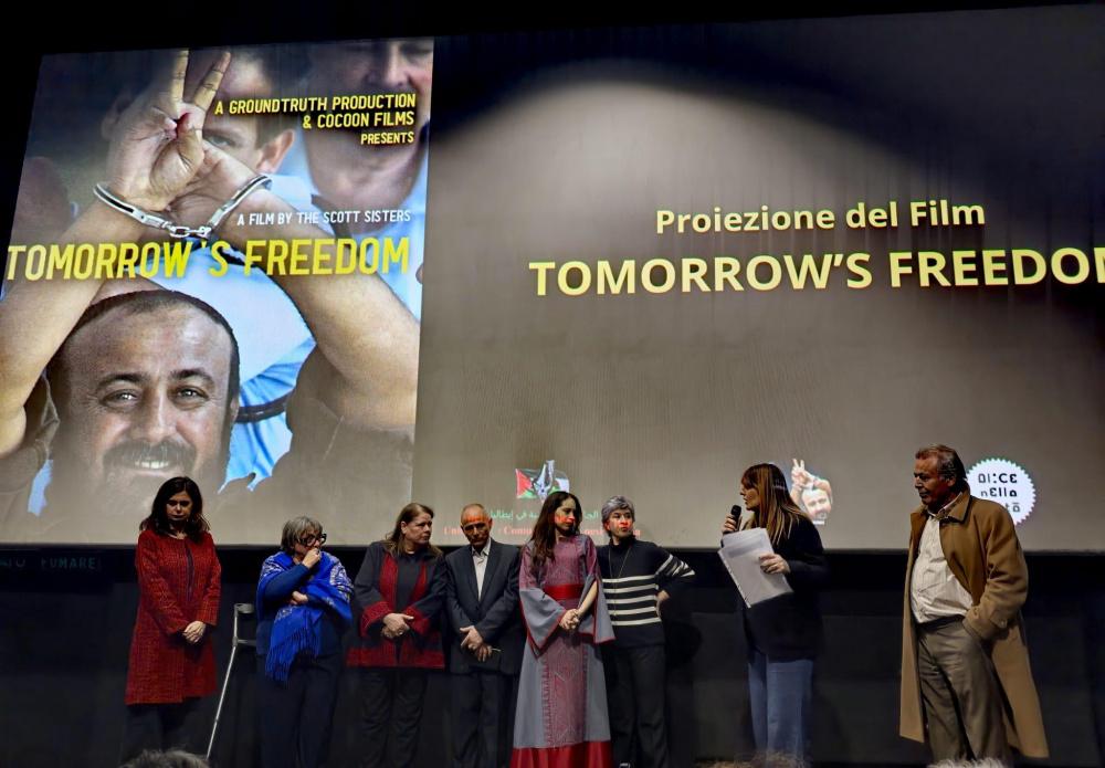 وشهد عرض الفيلم حضورًا رسميًا ووطنيًا لافتًا، تقدّمهم زوجة الأسير القائد مروان البرغوثي المناضلة فدوى البرغوثي(أم القسام) وسفيرة دولة فلسطين لدى إيطاليا منى أبو عمارة، وسفيرة دولة فلسطين لدى بلجيكا والاتحاد الأوروبي ولوكسمبورغ د. أمل جادو، وعضو المجلس الثوري لحركة فتح محمد اللحام، إلى جانب عدد من أبناء الجالية الفلسطينية ونشطاء ومتضامنين إيطاليين.