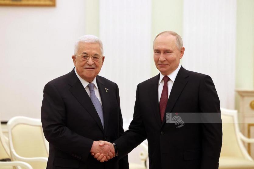 بحث رئيس دولة فلسطين محمود عباس، مع رئيس روسيا الاتحادية فلاديمير بوتين، في لقاء قمة عقد في القصر الرئاسي بالعاصمة الروسية موسكو، اليوم الخميس، آخر المستجدات والتطورات السياسية في الأراضي الفلسطينية.