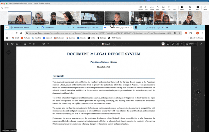 المكتبة الوطنية الفلسطينية تبحث تطوير نظام الإيداع القانوني بالتعاون مع مكتبات وطنية دولية