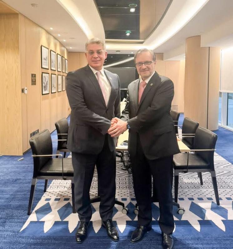وعلى هامش القمة العالمية للحكومات 2026، التقى شنار برئيسة صندوق النقد الدولي السيدة كريستينا جورجيفا، ومدير إدارة الشرق الأوسط وآسيا الوسطى بصندوق النقد الدولي د. جهاد أزعور.