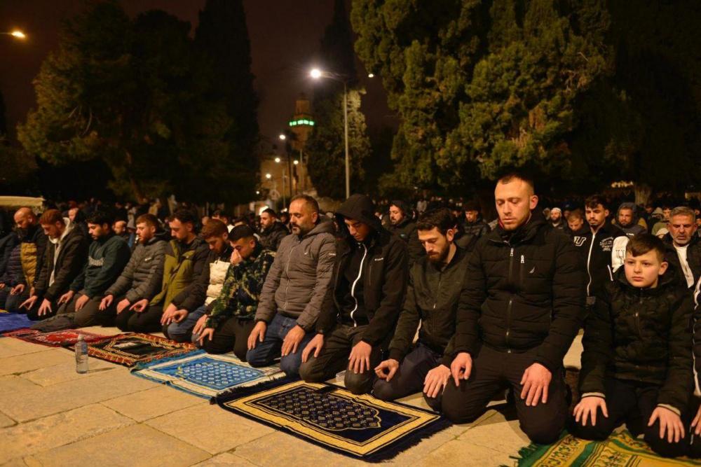 أدى آلاف المصلين صلاة العشاء والتراويح في اليوم الأول من شهر رمضان المبارك في المسجد الأقصى وسط قيود فرضتها قوات الاحتلال.