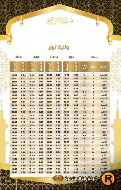 تحميل إمساكية رمضان 2026 في تونس | مواقيت الصلاة ووقت الفجر والمغرب في جميع الولايات
