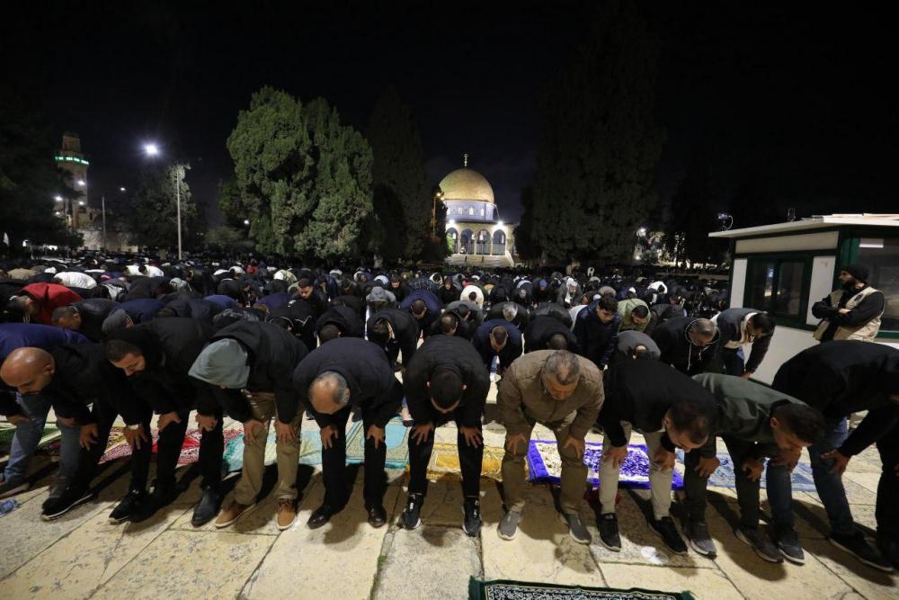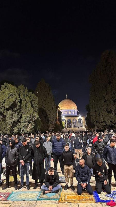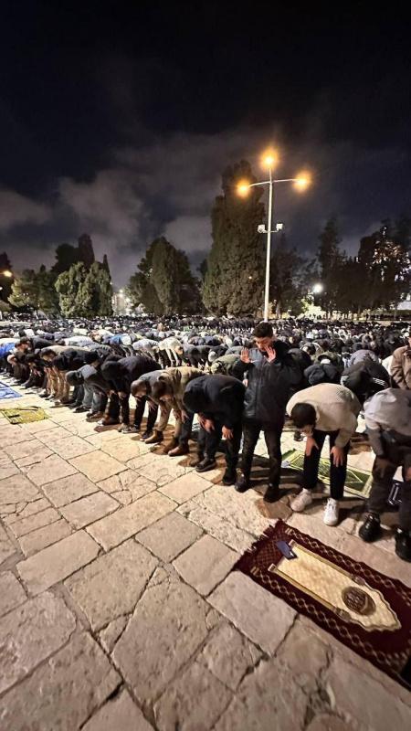 وقالت محافظة القدس، في بيان مقتضب، إن 60 ألف مصلٍ أدوا صلاتي العشاء والتراويح في رحاب المسجد الأقصى، رغم القيود والإجراءات المشددة التي فرضتها قوات الاحتلال الإسرائيلي على دخول المصلين.