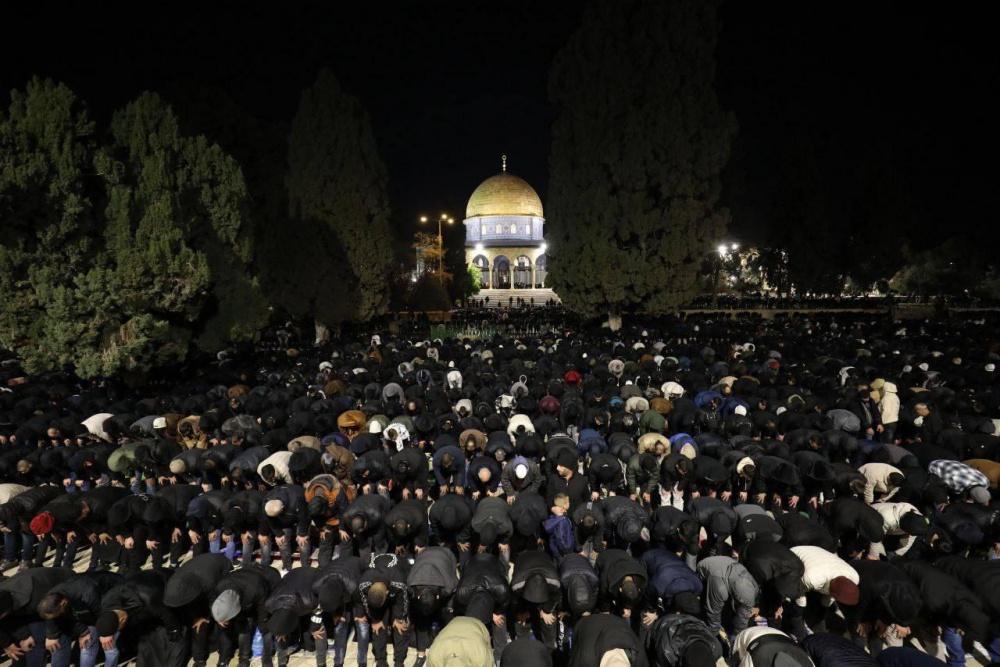 70 ألف مصل يؤدون صلاتي العشاء والتراويح في المسجد الأقصى
