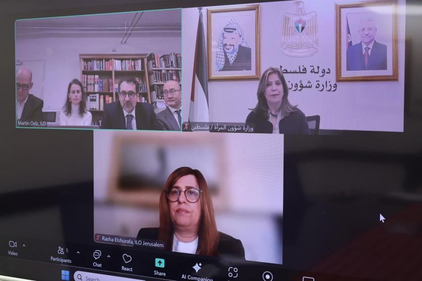 عقدت وزارة شؤون المرأة الفلسطينية لقاء عبر تقنية الاتصال المرئي مع وفد من منظمة العمل الدولية من جنيف والقدس، لبحث واقع النساء العاملات في سوق العمل الفلسطيني، وذلك في اطار التحضيرات الجارية لإصدار التقرير الدولي السنوي للمنظمة حول اوضاع العمال في فلسطين.