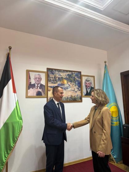 استقبل سفير دولة فلسطين لدى جمهورية كازاخستان وعميد السلك الدبلوماسي العام د. منتصر فؤاد أبو زيد، في مقر السفارة بالعاصمة أستانا، سفيرة جمهورية اليونان الجديدة أنطونيا كاتزورو، وذلك في زيارة مجاملة أعقبت تقديمها أوراق اعتمادها لرئيس جمهورية كازاخستان قاسم جومارت توكاييف كسفيرة مفوضة فوق العادة لبلادها.