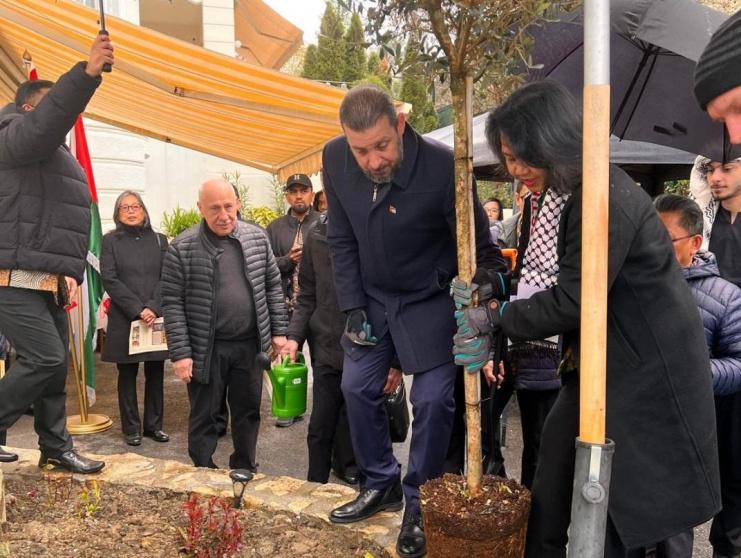 وقال السفير الحسيني: "نحن كشجر الزيتون، راسخون ومتجذرون، صامدون في وجه كل العواصف والتحديات".