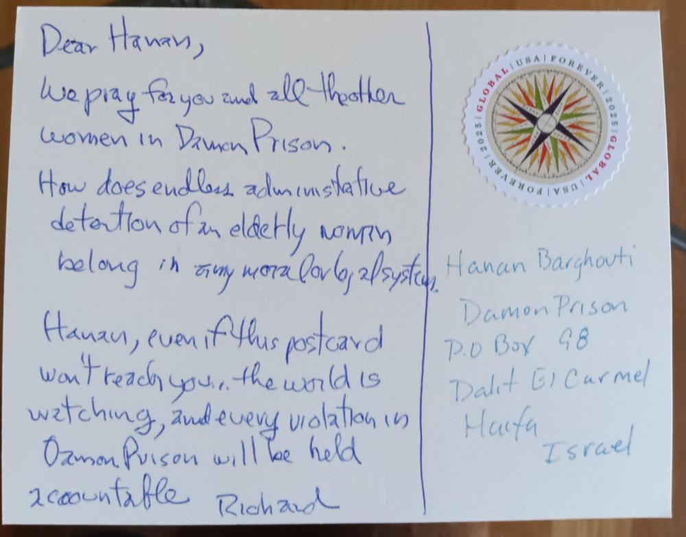 في حملة تضامنية بدأتها كنائس مختلفة تناصر الحق الفلسطيني من 15 ولاية أمريكية في بداية الصوم الأربعيني؛ قامت الكنائس التابعة لجمعية أصدقاء السبيل - أمريكا الشمالية (FOSNA) بإرسال أكثر من ألف بطاقة بريدية معنونة بأسماء الأسيرات اللاتي يقبعن في سجن الدامون، تستنكر في محتواها ما يعشنه من انتهاكات ممنهجة من تعذيب متواصل وحرمان من أدنى مقومات الحياة، ووسط أوضاع مأساوية وظروف غير آدمية، تعتبر انتهاكا للقانون الدولي، بما في ذلك اتفاقية جنيف ونظام روما الأساسي للمحكمة الجنائية الدولية، وترقى لأن تكون جرائم ضد الإنسانية، ومنها: الاحتجاز التعسفي، والتعذيب، والحرمان من محاكمة عادلة، والإيذاء الجسدي والنفسي، والعزل التام عن محيطهنّ الخارجي.