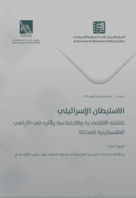 نفذ معهد أبحاث السياسات الاقتصادية الفلسطيني (ماس)، بالتعاون مع المركز العربي للأبحاث ودراسة السياسات، مشروعاً بحثياً مشتركاً يتناول ملف "الاستيطان الإسرائيلي: تكلفته الاقتصادية والاجتماعية وآثاره في الأراضي الفلسطينية المحتلة". ويأتي هذا المشروع في سياق تقديم مقاربات تحليلية فلسطينية أصيلة ومعمّقة لقضية الاستيطان الاسرائيلي، من خلال إبراز أبعاده الاقتصادية والاجتماعية وتداعياته الممتدة على مختلف مناحي الحياة في الأراضي الفلسطينية.
