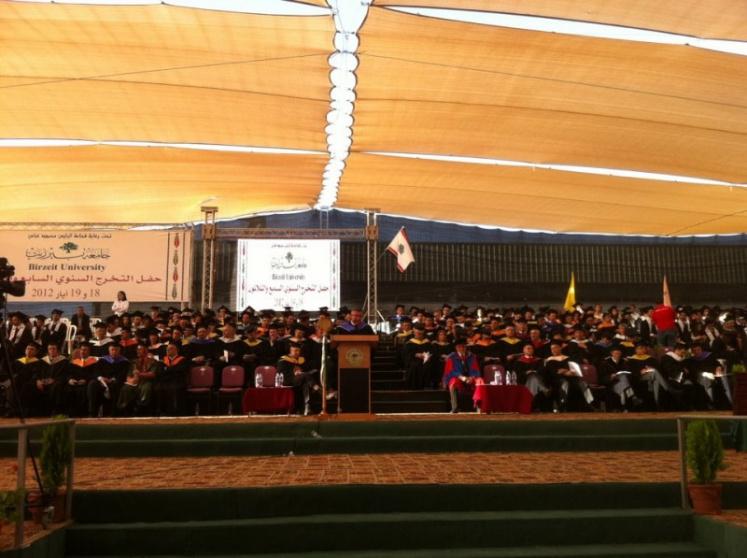 ' يسعدني أن أكون بينكم اليوم، لأنقل إليكم تحيات وتمنيات فخامة السيد الرئيس، الذي شرفني بأن أنوب عنه في احتفالكم واحتفالنا معكم، بتخريج الفوج السابع والثلاثين لهذه الكوكبة النيرة، من أبنائنا الطلبة في جامعة بيرزيت؛ وإذ أبارك باسم فخامته، وباسمي شخصياً، لشبابنا وشاباتنا الذين يُتَوجون اليوم بنيلهم شهاداتهم سنواتٍ خَلَت من الجَدِ والتحصيل العلمي والاجتهاد، ليصلوا إلى هذه المرحلة الهامة واللحظة السعيدة، والتي ما كان يمكن لها أن تكون لولا تضافر جهود وعطاء أبائكم وأمهاتكم وأساتذتكم، فالفضل كله يعود لأولئك الآباء والأمهات الذين وفروا لكم الأدوات المادية لتتمكنوا من الجلوس على مقاعد الدراسة، ولأساتذتكم الأجلاء الذين قدموا ثمرة خبراتهم العلمية والمعرفية، ليدفعوا بكم إلى الحياة وأنتم تحملون مؤهلاتكم العلمية لتعلوا فيها شأن وطنكم وتسهموا في بنائه ورفعته وتطوره.