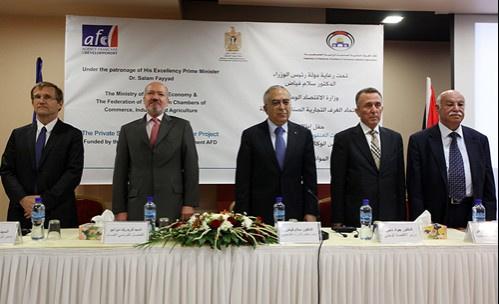 وثمن الدعم الفرنسي الرامي لاستدامة القطاع الخاص، إضافة إلى رعاية رئيس الوزراء سلام فياض التي تدل على مدى اهتمامه ودعمه للقطاع الخاص والمشاريع التي تصب في خدمته وتنميته، وهي ترجمة لتوجيهات القيادة ببناء مؤسسات الدولة وإيلاء القطاع الخاص أهمية كبيرة وإتاحة الظروف المواتية لنموه وتطوره.
