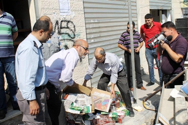 لجنة السلامة العامة في سلفيت تتلف كميات من بضائع المستوطنات