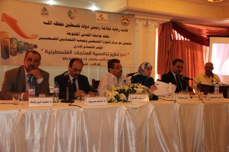 اختتمت جامعة القدس المفتوحة مع مركز التجارة الفلسطيني "بال تريد" وجمعية الاقتصاديين الفلسطينيين اليوم الثلاثاء، مؤتمر "نحو تعزيز تنافسية المنتجات الفلسطينية" الذي عقد على مدار يومين تحت رعاية فخامة الرئيس محمود عباس وبدعم من شركة الاتصالات الخلوية الفلسطينية "جوال".