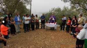 واشار الشوملي في موعظته الى "ان إقامة القداس بين أشجار الزيتون يأتي تيمناً بالمسيح له المجد الذي تألم بين أشجار الزيتون في القدس التي تقع تلالها قبالة هذه الاراضي المهددة بالمصادرة" ، داعيا الى وقف سياسة مصادرة الاراضي من اجل احلال السلام فوق أرض السلام وحتى تنعم شعوب المنطقة بالامن والاستقرار.