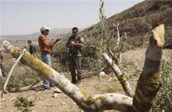 الاحتلال يقطع أشجار زيتون ولوزيات في أراضي نحالين في بيت لحم