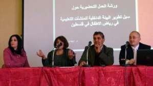 وهدفت الورشة التي بحثت سبل تطوير البيئة الداخلية للمنشآت التعليمية الخاصة برياض الاطفال في فلسطين، وذلك بالتعاون مع وزارة التربية والتعليم، إلى تحديد أبرز الاحتياجات الخاصة للطفل الفلسطيني في رياض الاطفال، إضافة لأبرز المعوقات التي تواجه البيئة التعليمية في هذا القطاع، وسبل التعاطي معها.