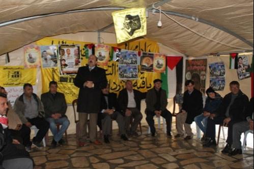 أعضاء لجنة تنفيذية ومحافظ جنين يلتقون أهالي الأسرى المضربين عن الطعام في عرابة