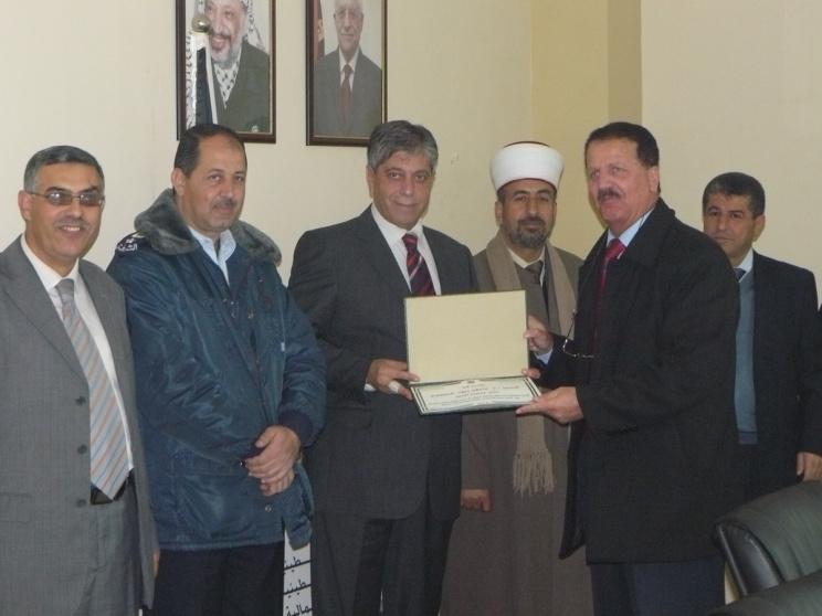 وفي نهاية الاجتماع قام المحافظ طوباسي بتكريم مدير الضريبة المضافة السابق محمود كميل ومدير عام الداخلية اوس شريم بمناسبة انتقالهم من المحافظة متمنيا لهم دوام التوفيق والنجاح