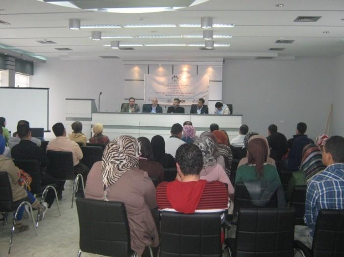 وفي ذات السياق تحدثت سميرة شاهين مسهلة الانشطة في المركز الفلسطيني للديمقراطية وحل النزاعات عن المشروع الذي يتم تنفيذه من تاريخ 1/10/2012 ويمتد الى تاريخ 31/8/20123 في المحافظات الشمالية وعرجت على الاهداف المتوقعة من المشروع ، كما تحدثت عن بعض التقارير الهامة خلال تنفيذ جولات رفع الاهتمام والتي تهدف الى ضبط هذه الجولات ومعرفة عدد المحلات المتلزمة والمحلات الغير ملتزمة.