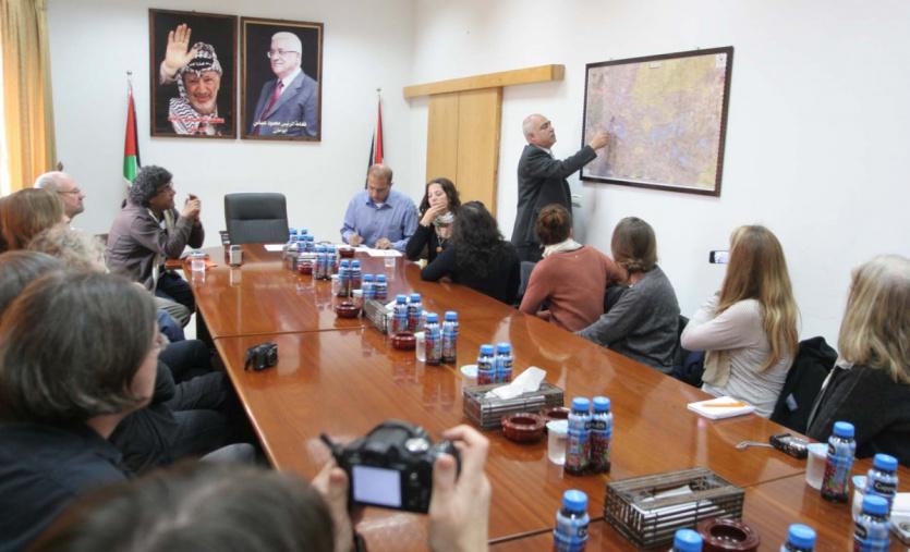 اطلع امحافظ محافظة قلقيلية لعميد ربيح الخندقجي، اليوم الاربعاء، وفدا ألمانيا على واقع محافظة قلقيلية وما تعانيه بفعل الإجراءات الإسرائيلية المتمثلة بالجدار والاستيطان ، جاء ذلك خلال لقائه الوفد اليوم في مكتبه والذي حل ضيفا على المحافظة ضمن برنامج السياحة البديلة ، ورافق الوفد زياد غنيم ونجاة طمش .