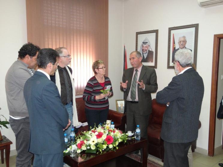 بحثرئيس بلدية الخليل الدكتور داود الزعتري، اليوم الجمعة، إمكانية تفعيل التوأمة مع بلدية " سان بيير ده كور " الفرنسية خلال لقائه وفد استقبله في دار البلدية ، والذي كان يترأسه نائبة رئيس البلدية "كوليت جوتيير" يرافقها النائب الثاني "جويل بيرس" و"فرانسواز فريغولي" عضوة المجلس البلدي وباسم داود مسؤول قسم الشباب إضافة إلى عبد السلام أبو إرميله عضو مجلس الأمناء في الكلية الإبراهيمية بالقدس بمشاركة عضو مجلس بلدي الخليل الدكتور أنور أبو عيشة وحضور عدد من أعضاء المجلس البلدي .