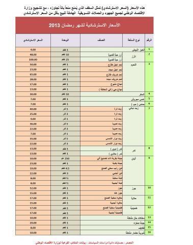 وأقر المجلس الأسعار الاسترشادية لشهر رمضان، وهي تمثل الحد الأعلى المسموح به للبيع.