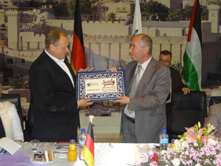 و قد استهل رئيس بلدية الخليل كلمته بتقديم الشكر للحكومة و الشعب الالماني على ما يقدمه من مساعدات للشعب الفلسطيني بشكل عام و لمدينة الخليل بشكل خاص مؤكدا على اهمية المشاريع التي تم تنفيذها بدعم من الحكومة الالمانية في مدنية الخليل على تحسين حياة سكانها و تأثيرها الايجابي في تطوير القطاعات المختلفة فيها.