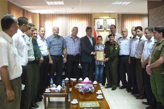وسلم المحافظ طوباسي درعا تقديريا للطفل دراغمة تقديرا منه لأمانته داعيا الى اعتبار هذا الطفل نموذجا يحتذى به في حب الوطن والأمانة والإخلاص وتكريما لذويه الذين احسنوا التربية.