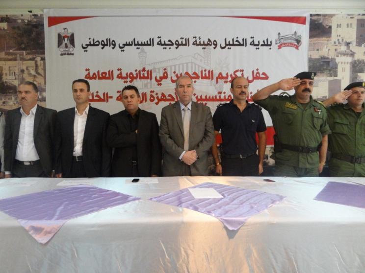 كرمت اليوم بلدية الخليل و هيئة التوجيه السياسي في المحافظة المتفوقين في امتحان الثانوية العام من ابناء المنتسبين للأجهزة الامنية بحضور الدكتور داود الزعتري رئيس بلدة الخليل و قادة الاجهزة الامنية وممثل المحافظ وعدد من رؤساء المؤسسات الرسمية والأهلية و اهالي المتفوقين و حشد من المهتمين