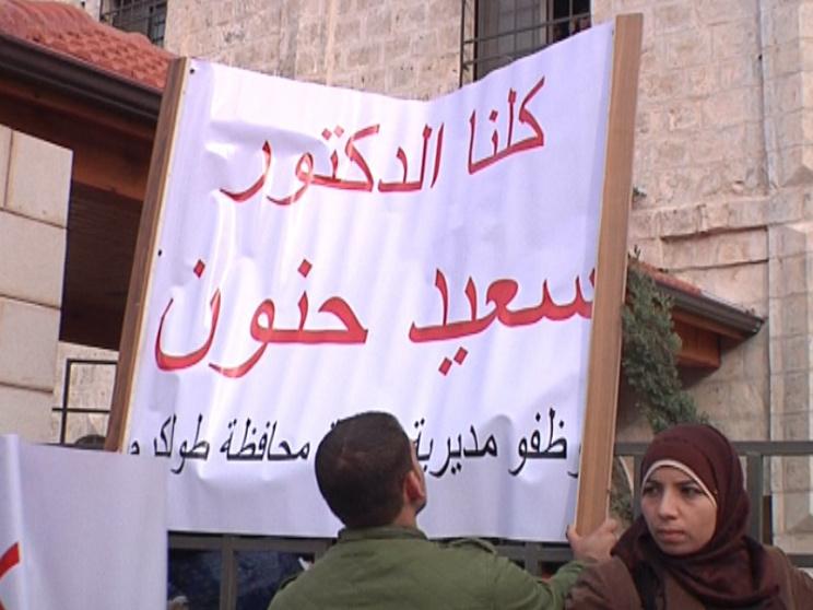 حسين ابو عواد-اعتصم موظفو مديرية صحة طولكرم، وعدد من المواطنين اليوم الثلاثاء، أمام مقر المديرية وذلك احتجاجا على قرار الوزير د.جواد عواد بنقل مديرهم العام الدكتور سعيد حنون إلى صحة رام الله.