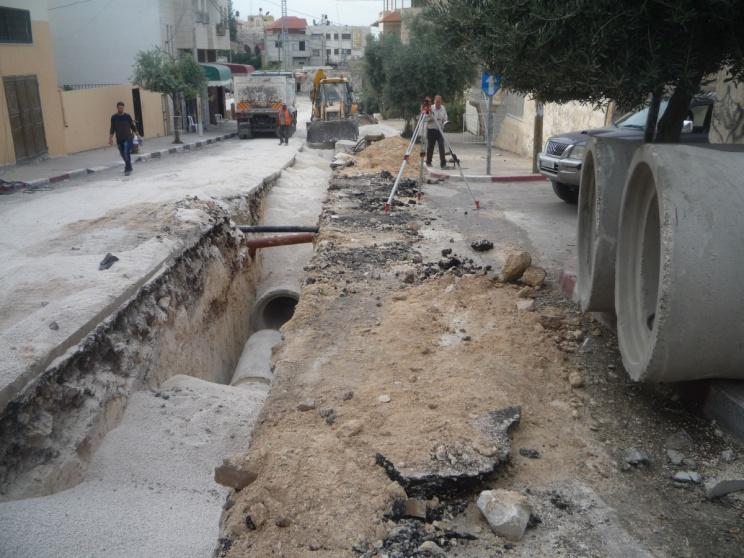 باشرت طواقم دائرة المياه والصرف الصحي في بلدية طولكرم بأعمال إنشاء وتمديد خطوط وشبكات لتصريف مياه الأمطار في الشارع الممتد من مبنى البلدية القديم وحتى شارع قاقون، وذلك بتمويل من صندوق البلدية الخاص وتنفيذ شركة العزام للمقاولات.