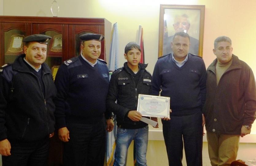كرمت الشرطة اليوم الثلاثاء الطالب ملاك عمر رجا سرحان والبالغ من العمر 15 عاما من سكان مدينة طولكرم لأمانته وقيامه بتسليم الشرطة حقيبة وجدها وبداخلها مصاغ ذهبي.