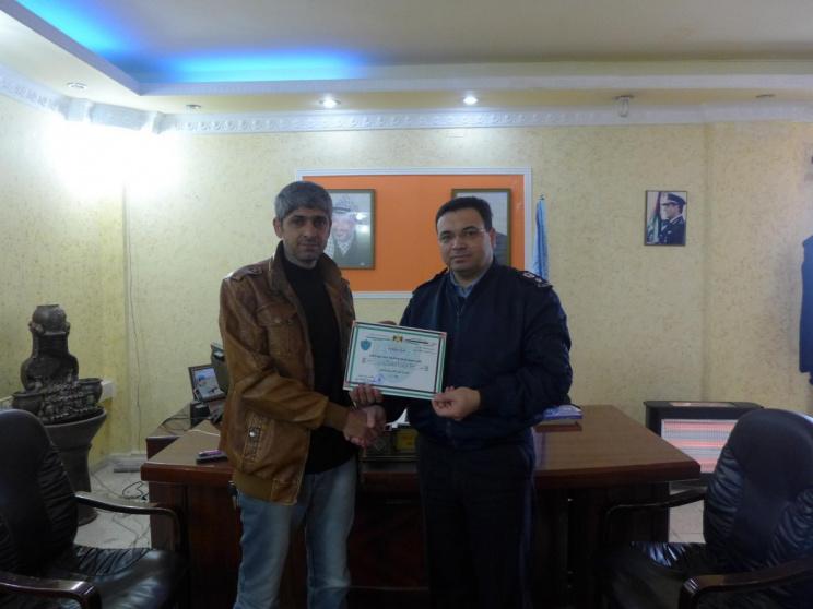وذكر بيان لإدارة العلاقات العامة والإعلام في الشرطة بان المقدم علي ابحيص مدير شرطة المحافظة قدم شهادة شكر وتقدير للمواطن أبو الرب.