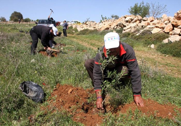 زرع أشتال زيتون وحمضيات في أراضي خربة جبارة جنوب طولكرم
