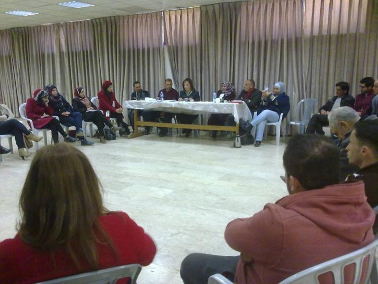 طه أبو حسين:في دائرة أدبية تجمع أكثر من عشرين أديبا فلسطينيا، ما بين شاعر وناثر وروائي وقاص، يتبادلون فيما بينهم ما تخطّه الأقلام، التفَّ اليوم السبت أعضاء الندوة الثقافية على شرف الشاعرة الفلسطينية صونيا خضر في قاعة الجاليري بالخليل للدوران في فلك الأدب الفلسطيني والعالمي.