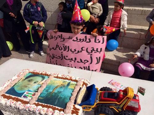 احتفلت عائلة سواحرة المقدسية، اليوم الأحد، بميلاد ابنها داوود (٥ أعوام) في ساحة مقر بلدية الاحتلال في القدس، وذلك بعد أن هدمت بلدية الاحتلال منزل العائلة قبل نحو أسبوعين.